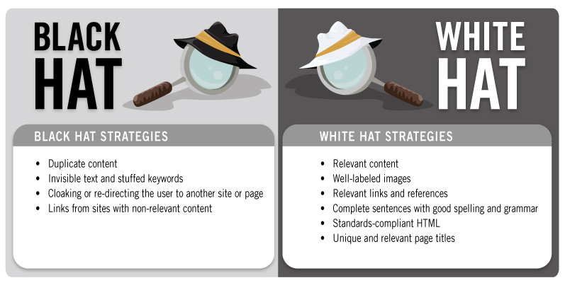 Difference between White Hat, Black Hat and Gray Hat SEO